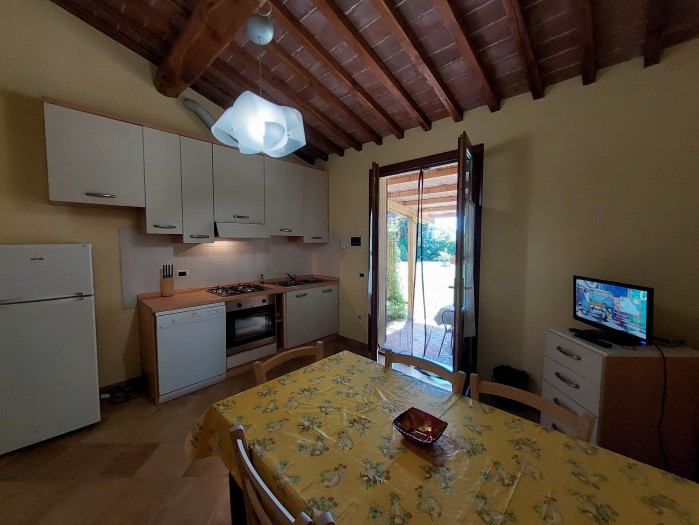 This holiday home is at 4 km from the town of Vada and sea, immersed in the countryside, in a peaceful area far from the bustle. It consist of 3 apartments, all on ground floor with private covered terrace, and a large garden with swimming pool (12 x 6 m, depth 140 cm, open from May 15th to Sep. 30th) for all the guests. On the property there is also a private car park, a laundry room and a barbecue. Internet Wi-Fi connection.