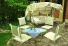 From the living room one can walk onto the covered terrace, surrounded by the brilliant greenery of the chestnut tree branches. It is furnished for al-fresco dining with marble table and wrought iron chairs and settee with comfortable cushions. The living room leads to the two bedrooms (one with an extra single bed) each with its own bathroom. The fixtures and fittings of both bathrooms are of a very high standard, they each have a shower cubicle and the larger bathroom has a washing machine. The apartment is very well furnished and there is central heating.