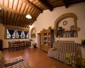 Holiday apartment on 2 floors, located on the first floor, of 67 sq. m. On the first floor is 1 living room with kitchenette, double divan bed and fireplace, 1 covered loggia overlooking the swimming pool. On the second floor is 1 double bedroom, 1 bedroom with bunk bed, 1 bathroom with shower. Nice covered terrace with view