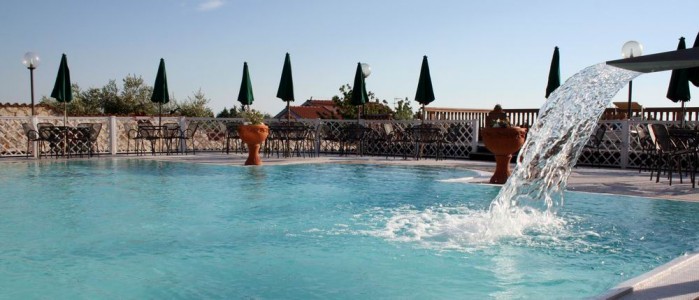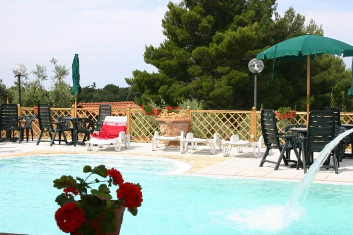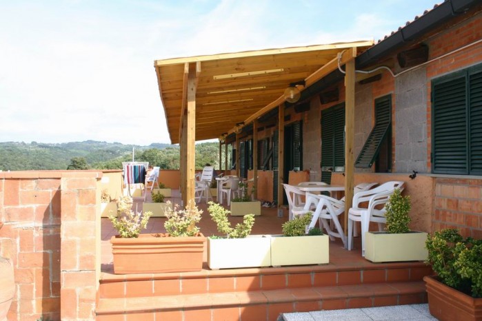 The holiday farmhouse consists of 20 nicely furnished apartments on ground floor with living room and kitchen corner (4-gas fire, fridge), double bedroom, bathroom with shower, and private patio or terrace. There are a couple of studios for 3 people whereas the other apartments are for 4-5 people. Also available to clients are a Sat-TV room, a nice little room for tasting the homemade wine, a washing machine, a swimming pool (12x6), large sun terrace with breathtaking view over the countryside up to the sea, a pool bar for breakfast and aperitif, a children playground, a washing machine, tennis table and a large car parking. Internet wi fi available.
