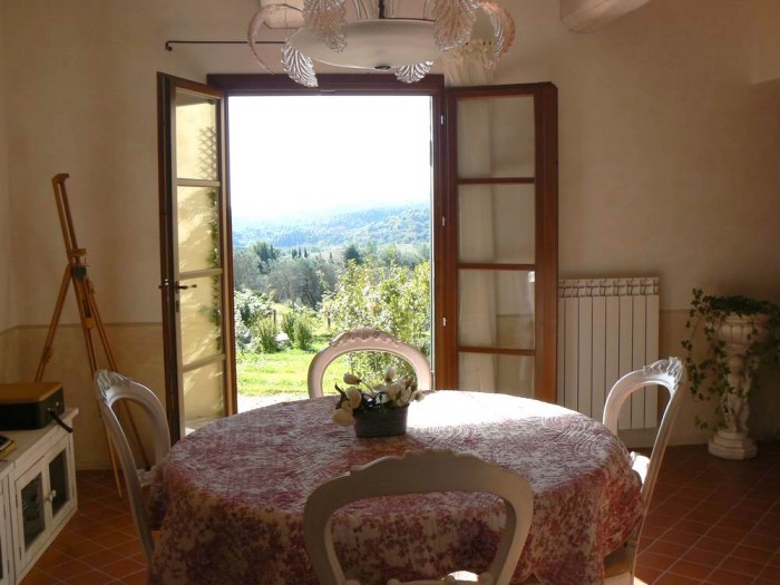 sqm) is immersed in an idyllic countryside, surrounded by olive trees, cypresses, fruit trees and kitchen gardens, enjoying a breathtaking view over the valley. In the large fenced garden is a swimming pool (10x5m; depth: 1,5 m) in a panoramic position, furnished with table, umbrellas, sun loungers and a shower.